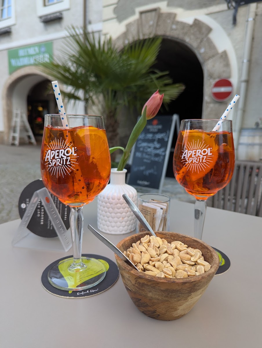 Relaxed friendly welcome, without pressure to order. Indoor and outdoor dining, with vantage point along the main street where the afternoon sun light enhances the atmosphere. After visiting the schloss or the Porsche museum, this bijou cafe is ideally located before traversing the narrow jitties leading down to Kirchgasse and circling back to the main carpark. Looking forward to a return trip for some homemade lunch, especially with good choice of nonalcoholic drinks if driving. Hospitable and homely feel.